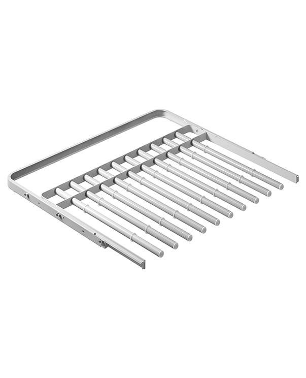 Брючница оснащена трубой диаметром 16 мм, рассчитанной на 10 пар брюк, и легко устанавливается между двумя вертикальными стойками на кронштейны глубиной 435 мм — без использования инструментов.