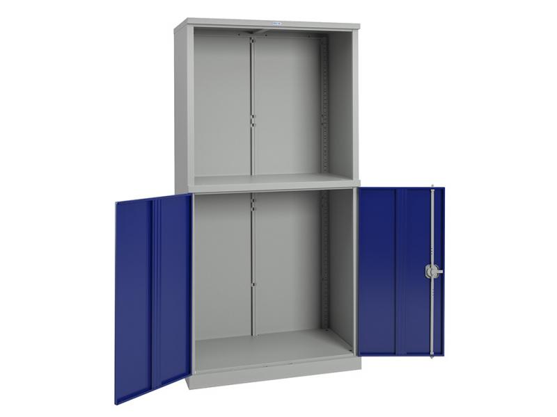 Инструментальный шкаф предназначен для хранения инструментов, слесарных приспособлений и других изделий на предприятиях, в мастерских и автосервисах. Шкаф разделен на 2 секции – верхняя половина шкафа открытая, нижняя с дверцами (ключевой замок, 2000 комбинаций).
